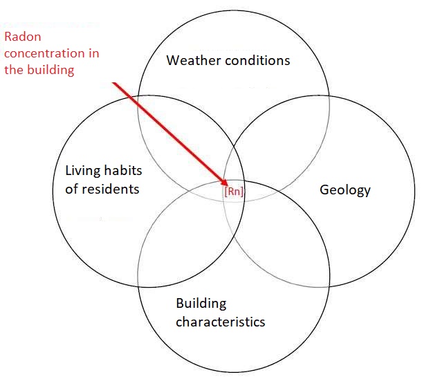 Zwei Veröffentlichungen der Hochschule für Technik und Architektur Freiburg zeigen mittels statistischer Basisanalysen, dass die Aussenlufttemperatur der Parameter ist, welcher den grössten Einfluss auf die Radonwerte in Innenräumen hat. Danach folgen Niederschlag und Wind, welche die Konzentrationen punktuell beeinflussen. Im Zusammenhang mit diesen Studien wurde auch nachgewiesen, dass der Luftdruck sowie die Feuchtigkeit der Aussenluft die Radonwerte in Innenräumen nur in geringem Masse beeinflussen.
